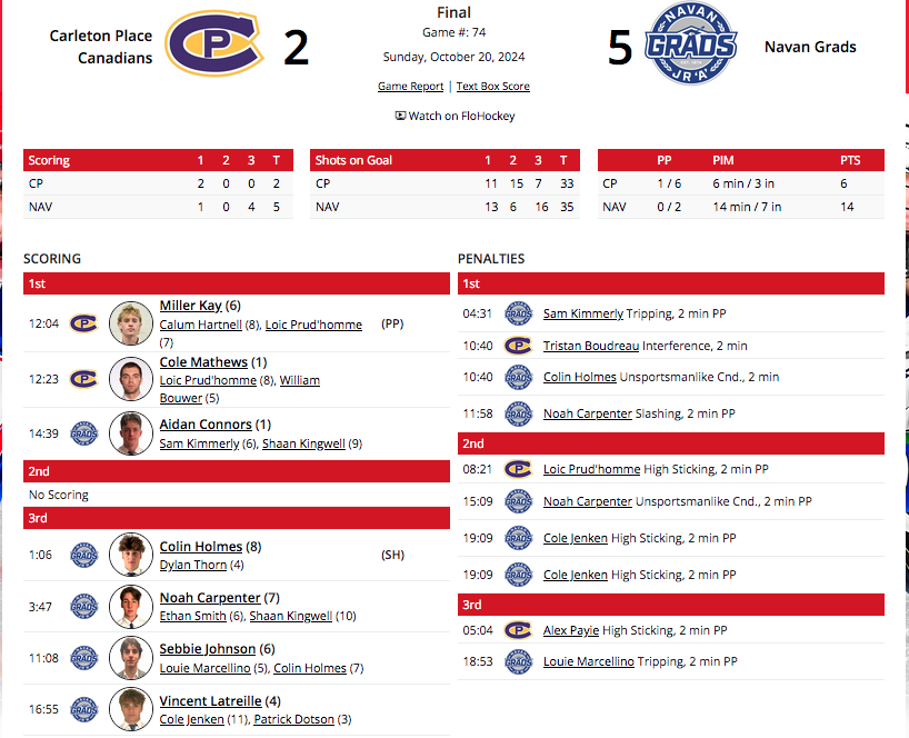 NEWS NAVAN GRADS WIN 5-2 OVER THE CARLETON PLACE CANADIANS by rwoodward October 21, 2024October 21, 2024